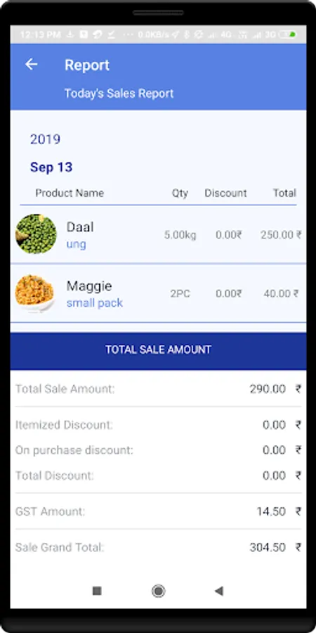 Control all your Sale from your mobile phone, send bills on WhatsApp to customers. No jhanjhat of printer or rolls. See all your sales for the day or for the month with one click. No counting of money anymore. End of Day Report tells you how much quantity you have sold for each Item, the total money made against those quantity and the total business for the day. All this is in one Swipe.