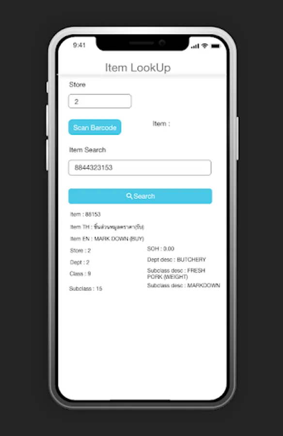 Exclusive access to makro staff to view real time product detail. Barcode scanner recognized all common barcodes type. Search the Siam Makro products by just scanning the Product barcode and get a complete detail about product. The app provides product information like price, current stock on hand, any on Order quantity, Product description anymore!
