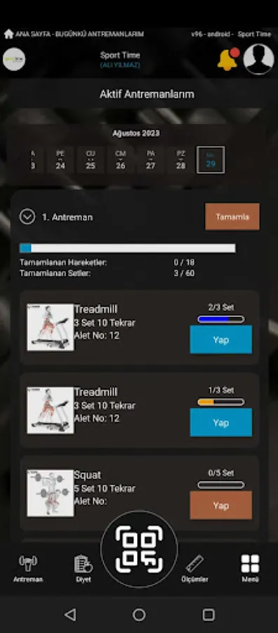 Trainings: In this section, you can visually examine more than 1500 exercises that you will do in the sports club, follow your special training program and your daily regional development.