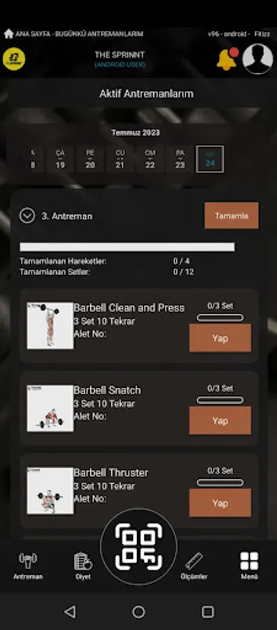 Trainings: In this section, you can visually examine more than 1500 exercises you will do in the sports club, follow your special training program and your daily regional development.