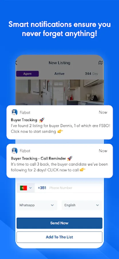 Tech solution of thousands of real estate agents: Fizbot. Exclusively developed for real estate agents, Fizbot makes your life easy, gives pace to your business, and increases your sales. Join the global application of winning agents!