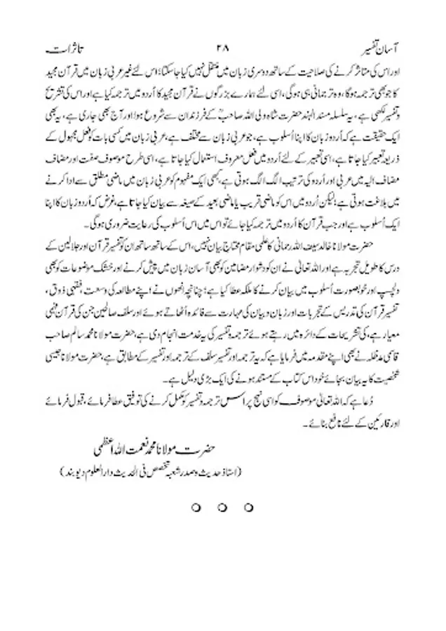 اس تفسیر میں آسان و سلیس اردو زبان میں قرآن مجید کا ترجمہ اورمختصر تشریح جس میں مستند احادیث کی روشنی میں قرآنی تعلیمات کو واضح کیا گیا ہے، انبیاء اور ان کی اقوام سے تعلق واقعات کے ذیل میں دعوتی نکات اور سبق آموز پہلوؤں پر روشنی ڈالی گئی ہے، قرآن مجید سے مستنبط ہونے والے شرعی احکام اور خاص کر جدید مسائل پر توجہ دی گئی ہے، اہل مغرب کی جانب سے پھیلائی جانے والی غلط فہمیوں کو دور کیا گیا ہے اور عصر حاضر کے غیر اسلامی اور نادرست افکار و نظریات کے بارے میں قرآن مجید کے موقف کی وضاحت کی گئی ہے۔
