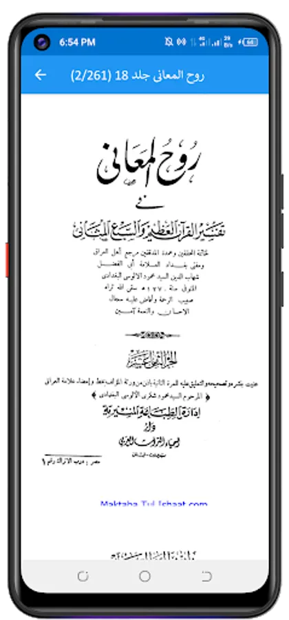 قرآن کریم کی یہ عربی تفسیر علامہ شہاب الدین محمود آلوسی بغدادی کی تصنیف ہے اس تفسیر کا مکمل نام "روح المعانی فی تفسير القرآن العظيم والسبع المثانی" ہے۔علامہ آلوسی کی وجہ شہرت تفسیر’’روح المعانی فی تفسیرالقرآن العظیم و سبع مثانی‘‘ہی ہے۔ ایسی آیات جن میں اللہ تعالی کے احکامات بیان ہوئے ہیں علامہ آلوسی ؒانکی تفسیر میں بہت تفصیل سے کام لیتے ہیں اور اکابر فقہاء کی آراء اورانکاموقف پیش کرتے ہیں اور اس موقف کے حق میں یااس کے خلاف دلائل بھی لاتے ہیں۔ احکامات سے متعلق آیات کی تفسیر میں آپ کا زیادہ تر جھکاؤ شوافع کی طرف رہتاہے اور کبھی کبھی احناف کے موقف کی بھی تائید کرتے ہیں اور بہت کم مواقع پر آپ نے اپنا جداگانہ موقف بھی اختیار کیا ہے