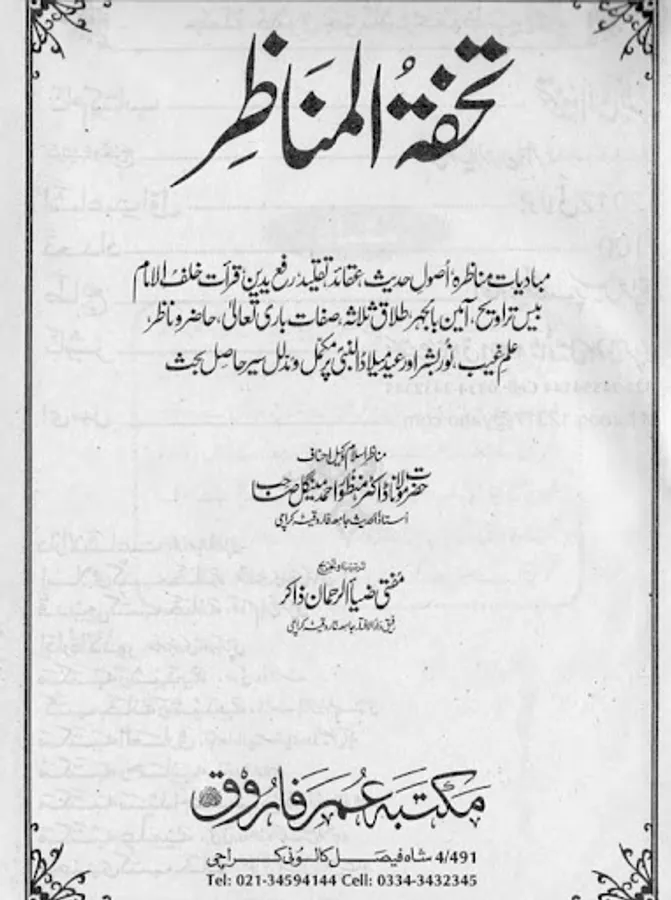 تحفۃ المناظر مولانا منظور احمد مینگل صاحب حفظہ اللہ کی ایک بہترین تصنیف ہے جس میں مندرجہ ذیل مسائل پر بہترین قر مدلل بحث کی گئ ہے