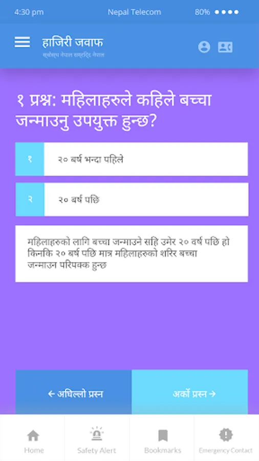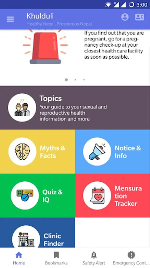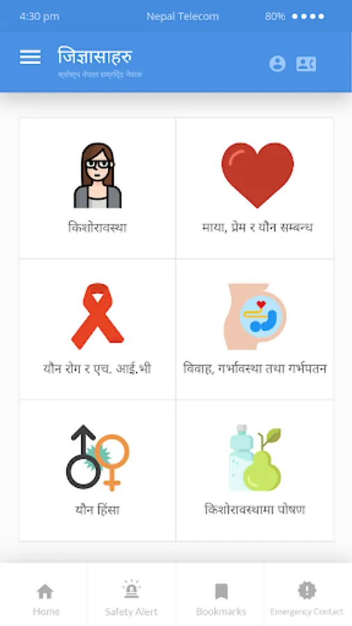 Following the onset of puberty, adolescents face many changes. Adolescence is a transition between childhood and adulthood; it is acknowledged that during this period adolescents may experience anxiety and uncertainty relating to their sexual and reproductive health. In Nepal, while many adolescents have access to a diverse range of information resources about sexual and reproductive health (e.g. friends, books, newspapers, and website), often their research is conducted in private. In some cases, the information they find may be inaccurate and out-dated. Therefore, this application (app) has been prepared with the objective to provide accurate information on sexual and reproductive health to adolescents and young people.