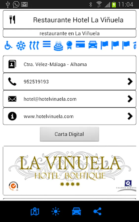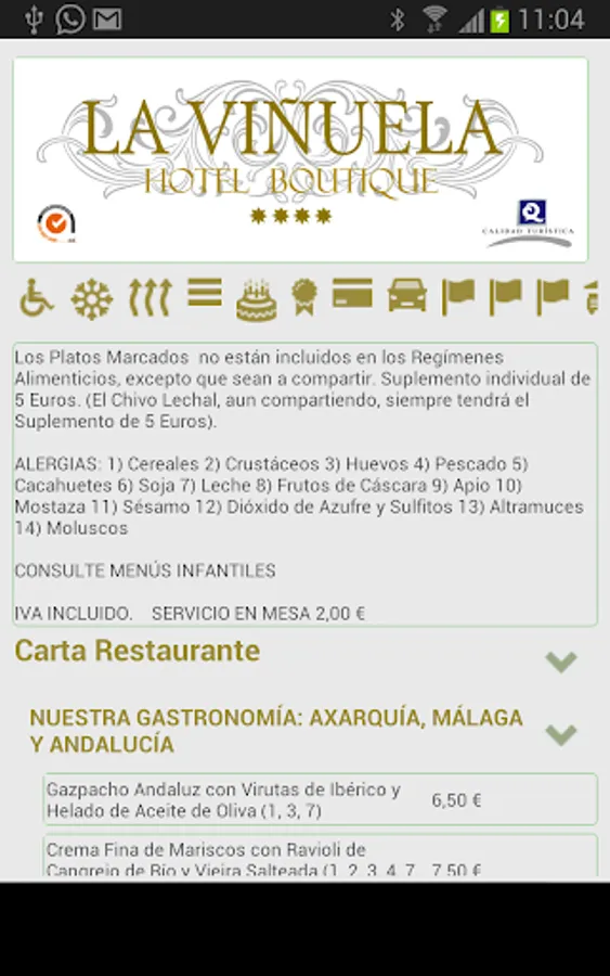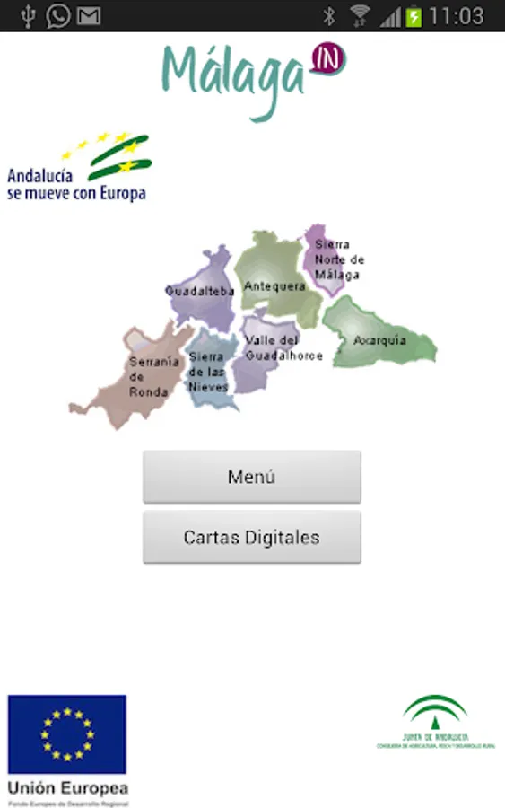 Digital cards for restaurants in the interior regions of the province of Malaga. Displays on the mobile device the gastronomic offer of the best restaurants.