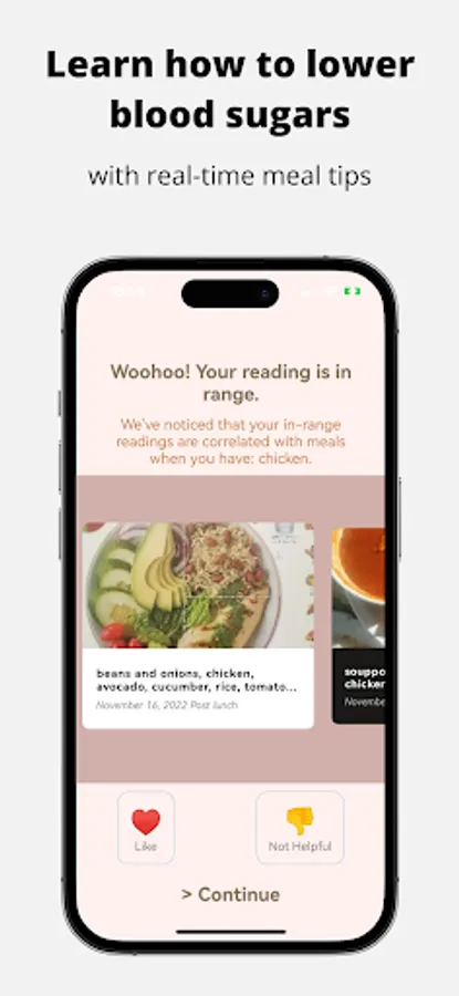 We also offer powerful analytics automatically, using AI to help identify food triggers for high blood glucose levels.