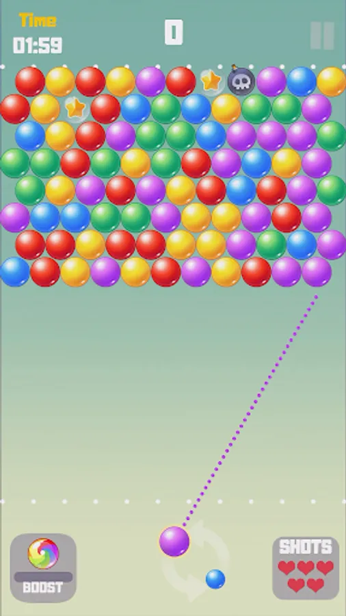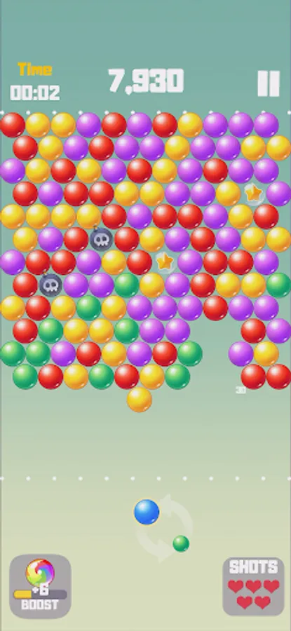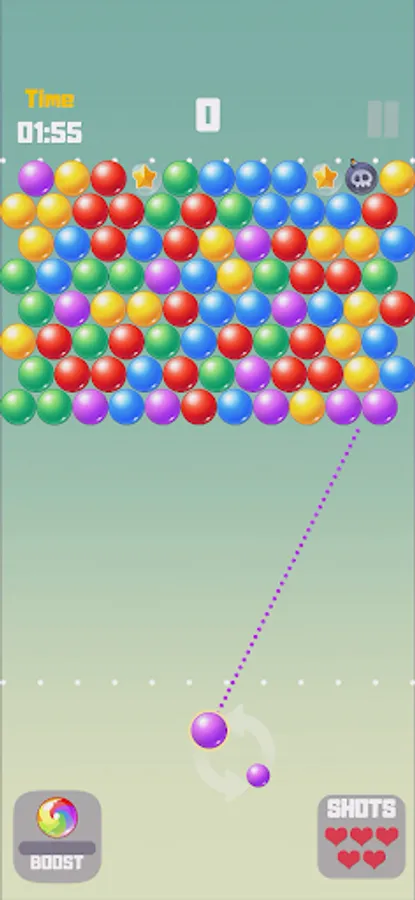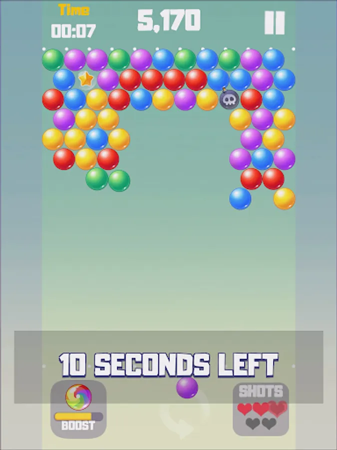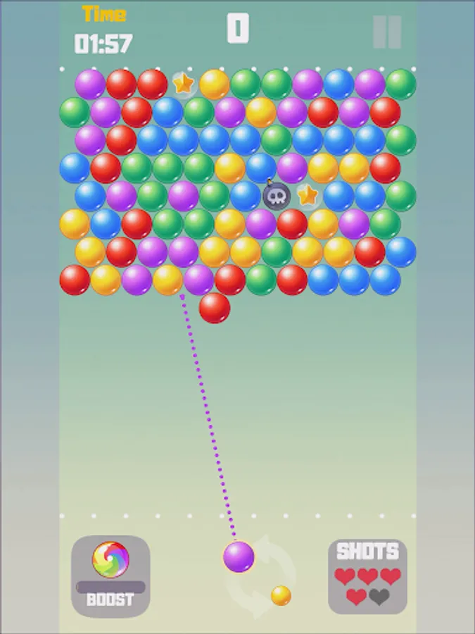 - Pop bubbles to create a burst ball and burst all the bubbles.