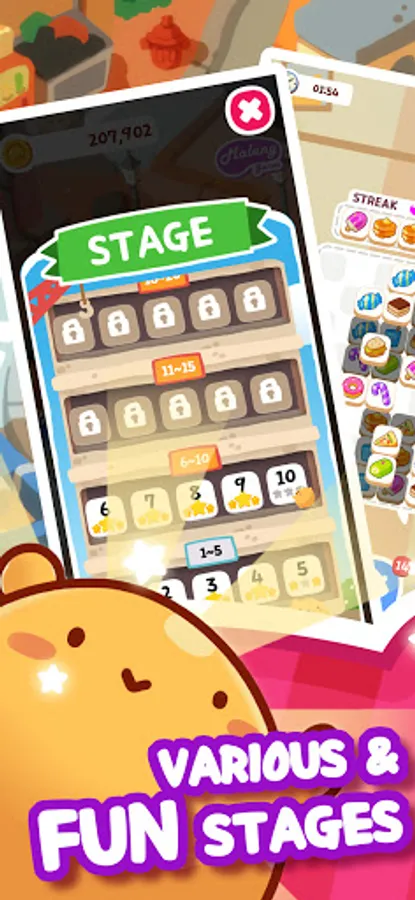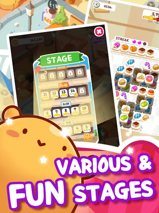 - Tap three of the same tiles in a row to get a Streak for bonus points.