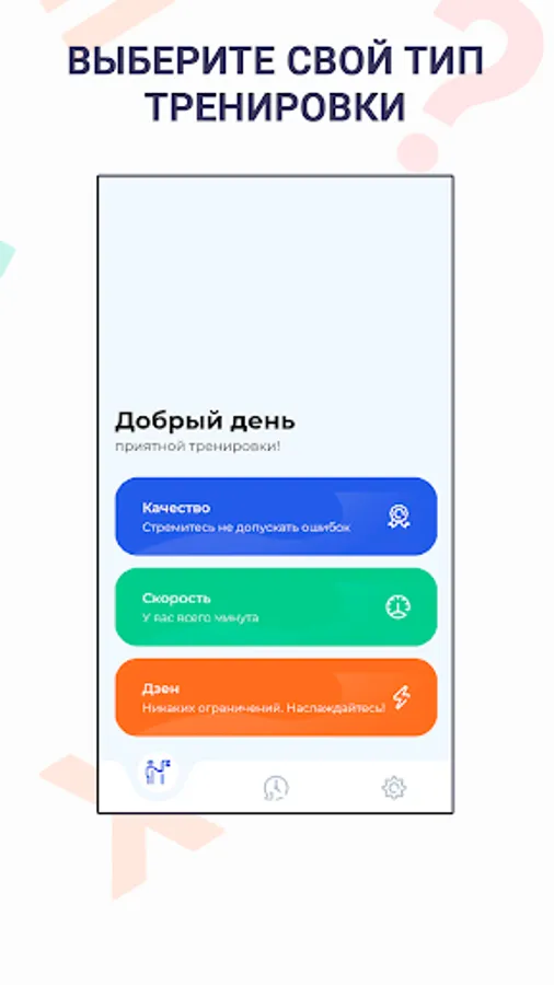 There are 3 types of exercise for you to choose from: quality, speed and zen.