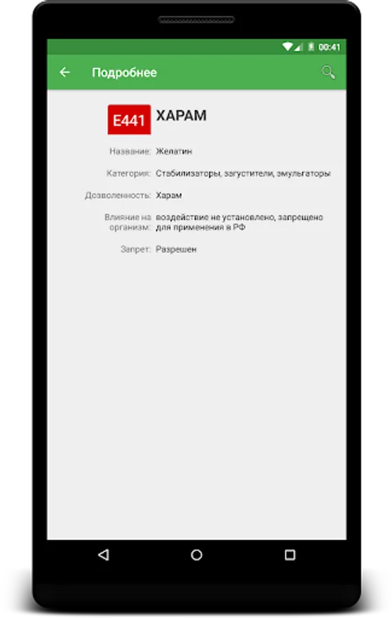 Additional features include: a category of additives, the degree of influence on the organism, the level of the ban on the territory of the Russian Federation and the EU. convenient search function added for quick access