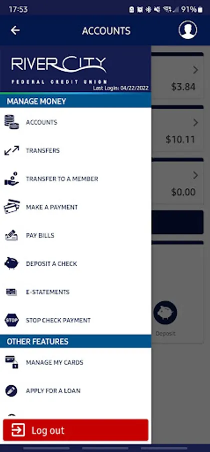 • Ability to transfer funds between shares, loans and other River City FCU members