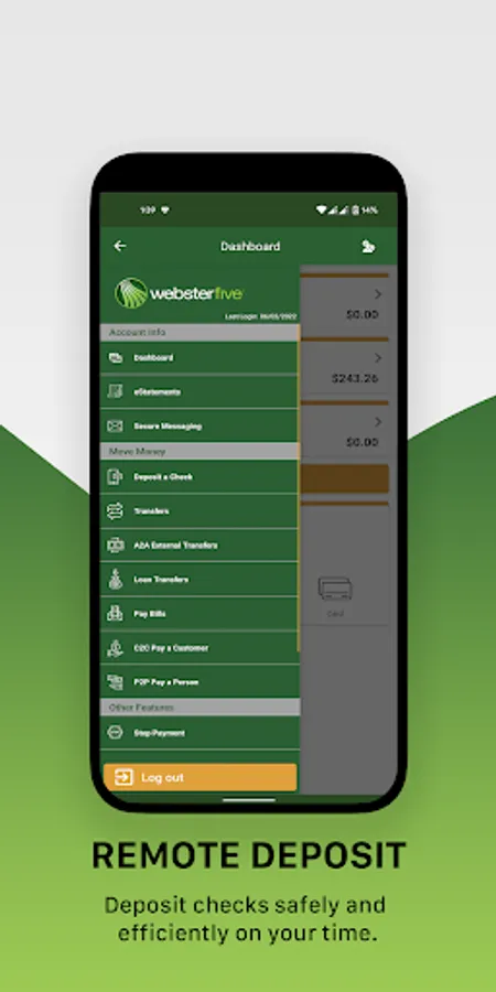 • C2C Pay a Customer: quickly transfer money between your account and a friend’s Webster Five account