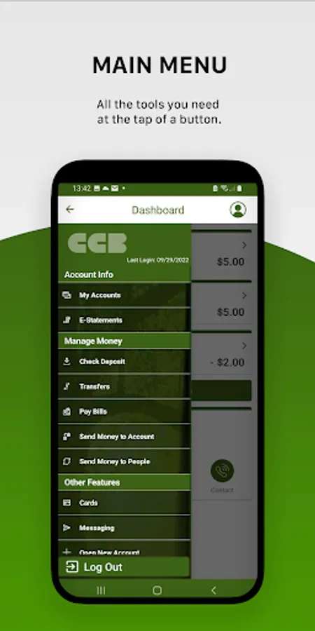 With CCB's Mobile Banking App, you can safely and securely access your accounts anytime, anywhere. Our mobile app is FREE and allows you to: