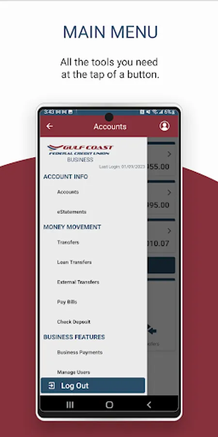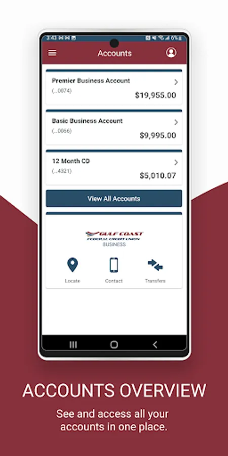 With the Gulf Coast FCU Business Mobile Banking App, you can safely and securely access your accounts anytime, anywhere. Our mobile app is FREE and allows you to: