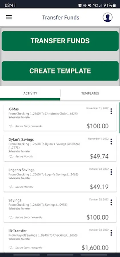 o Transfer funds between accounts