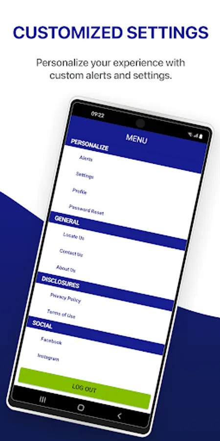 Locations – Find nearby branch locations using the device's built-in GPS.