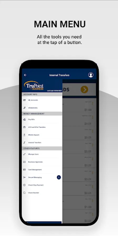 Access your TruPoint Bank Business accounts anywhere, anytime with the TruPoint BIZ app. Available to all TruPoint Bank Business online banking customers. Features include: