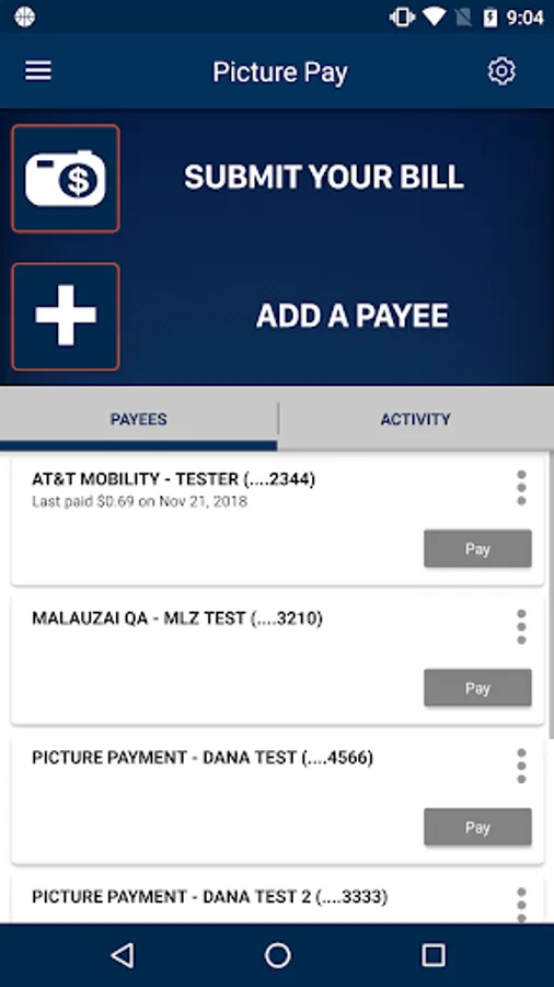 - Pay bills (PicturePay) Simply take a picture of your bill and send your payment