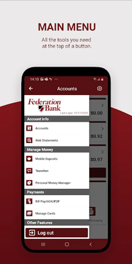 Federation Bank’s Mobile Banking App allows you access to your accounts anytime, anywhere and all from your mobile device!