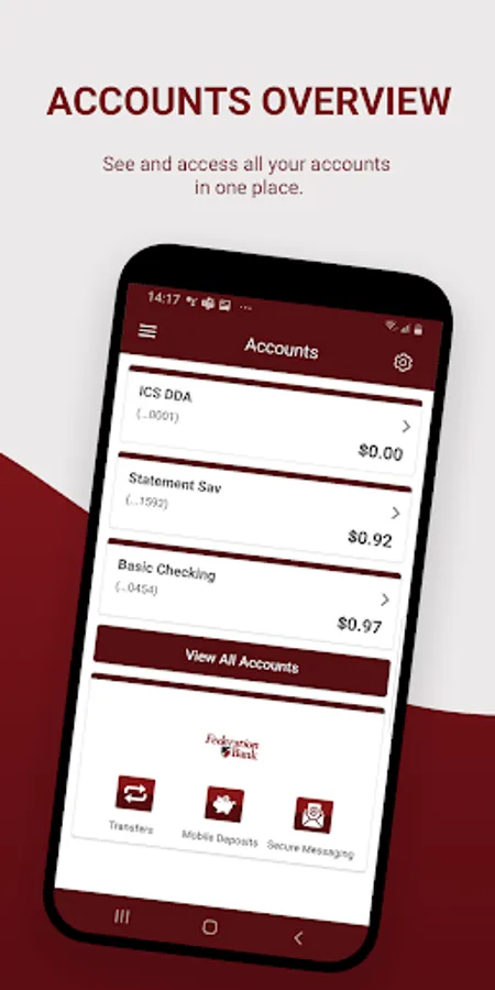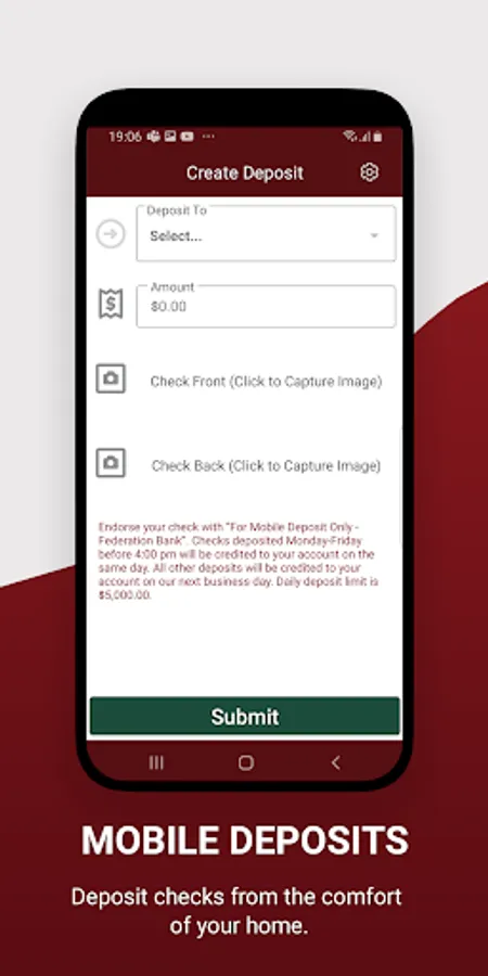 Our mobile app is available to all Federation Bank online banking customers. Access your Federation Bank accounts using your existing online banking username and password.