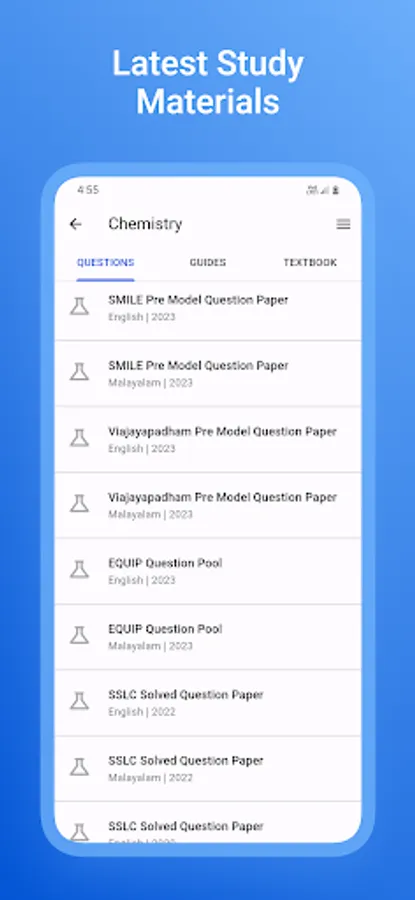 Our free learning app is packed with previous year question papers with answer keys, model question papers, question banks, exam guides, study notes, and Samagra SCERT textbooks for all subjects of the Kerala state syllabus in both Malayalam medium and English medium.