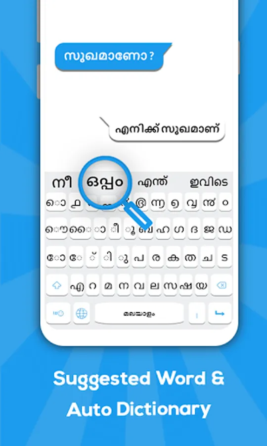 Malayalam Keyboard is best mobile Keyboard for typing in Malayalam language. Malayalam Typing Keyboard allows the user to write and type message in Malayalam language and Malayalam text words. Send message, email, and update status in Malayalam.