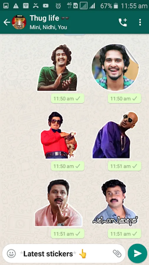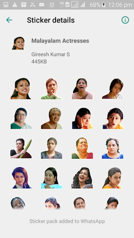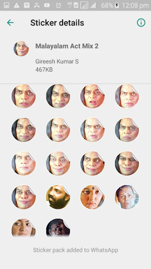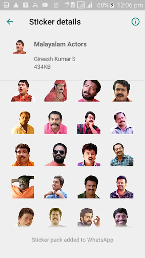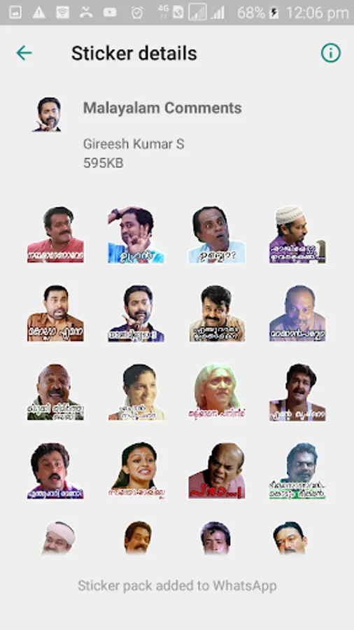 This sticker pack contains stickers of your favourite Malayalam movie actors to make your WhatsApp chats quite funny and interesting. In case of an error where you are the owner of an an image, please mail to gireeshkorani@gmail.com