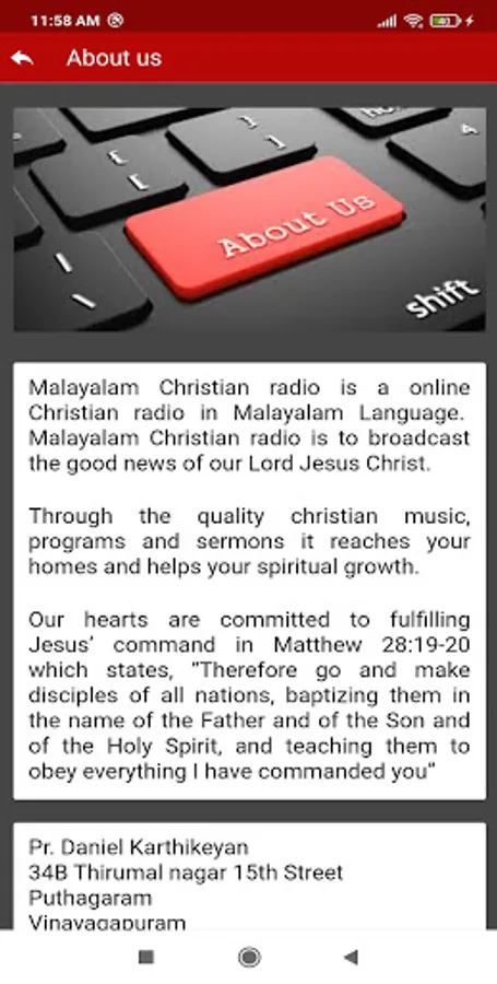 We will broadcast your Malayalam Christian Songs and Sermons free in this Radio. Contact us for more details.