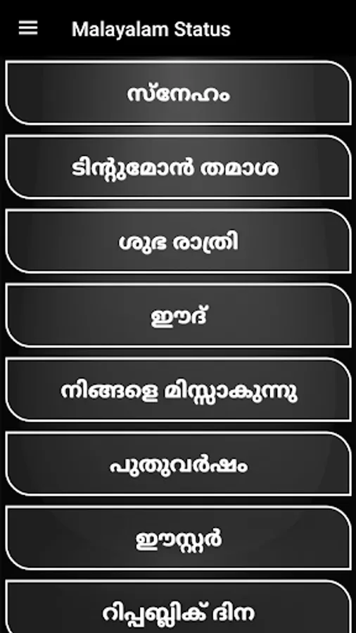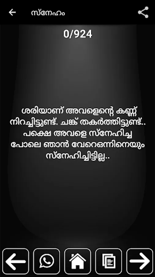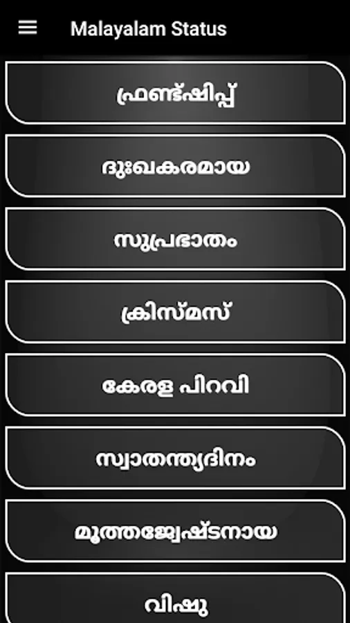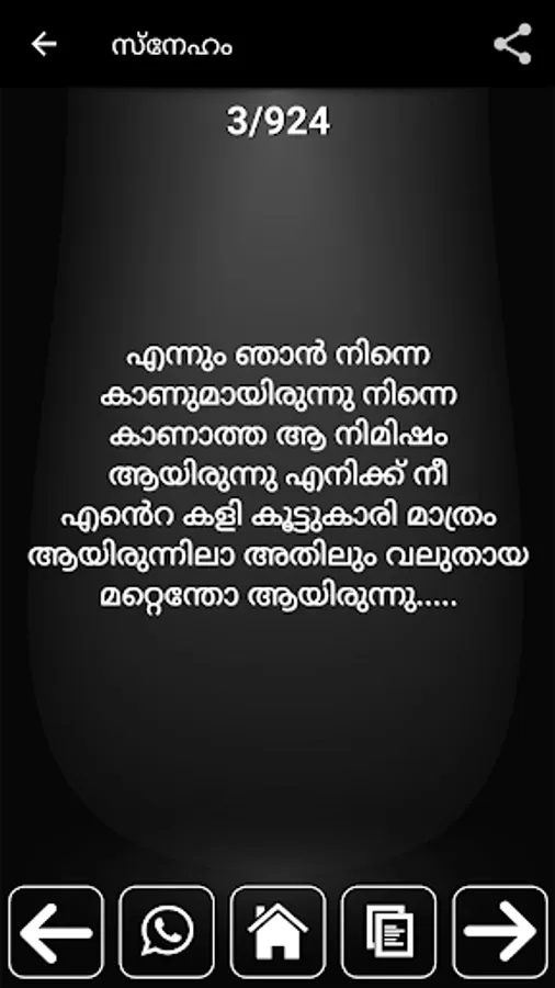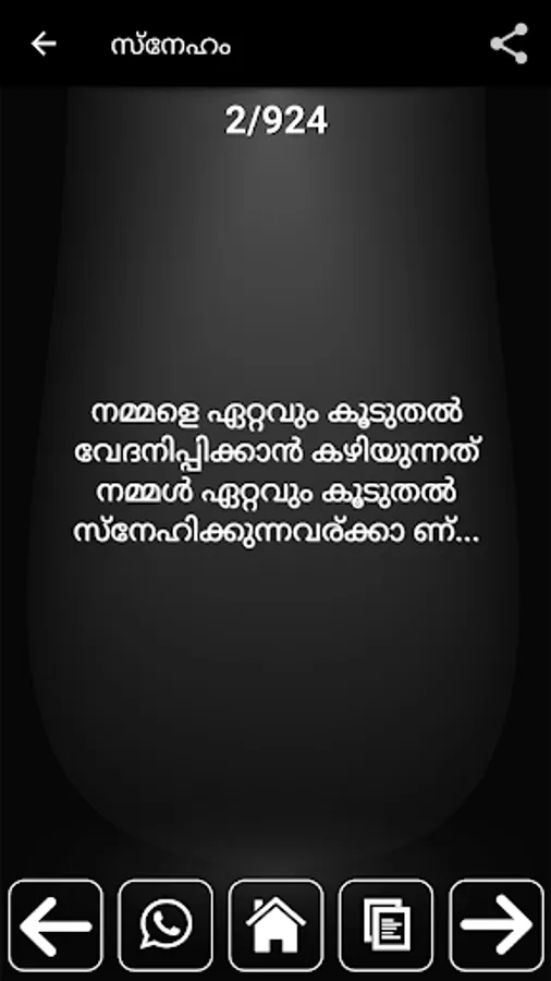 This is one of Best Malayalam sms , quotes and status App for share text , Images , wishes & famous quotes sayings to social media such as whatsapp Messenger , facebook and facebook Messenger etc. For whatsapp & Sms there is direct sharing button and for all other social media you can use copy button for easy copy.