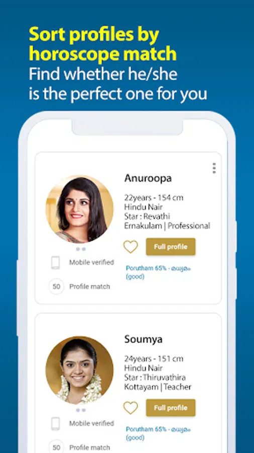 You can also use our community-specific Malayalee matchmaking apps such as Nair Malayogam, Ezhava Malayogam, Christian Kerala matrimonial, Muslim matrimonial, NSS Malayalee Matchmaking, and more.