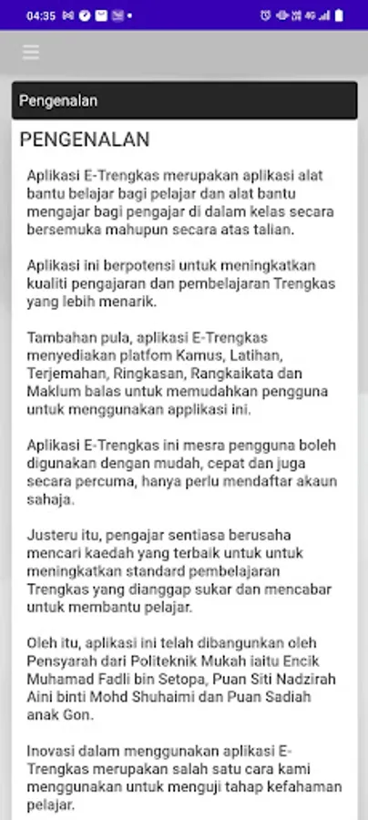 Aplikasi ini berpotensi untuk meningkatkan kualiti pengajaran dan pembelajaran Trengkas yang lebih menarik.