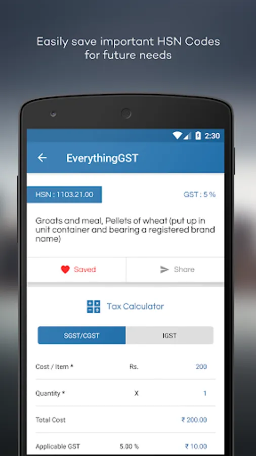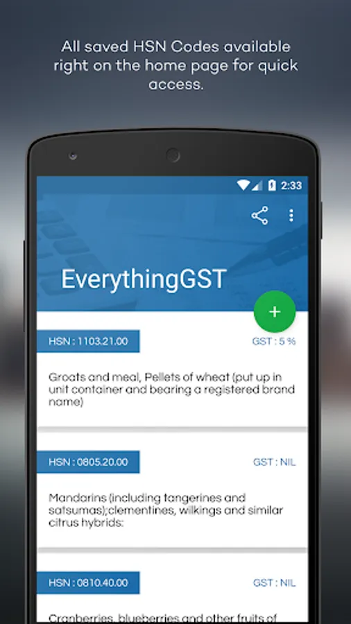 Everything GST Offline HSN Finder, Calculator is a simple and robust app that intends to bring all GST related information to one convenient place. With our ever growing list of features, you can rest assured that all the important GST information that you will ever need, would be just a touch of the finger away.