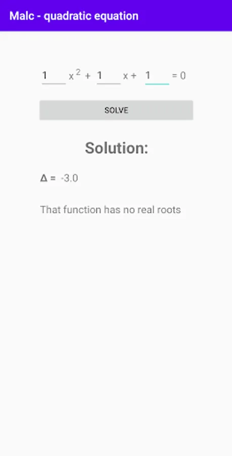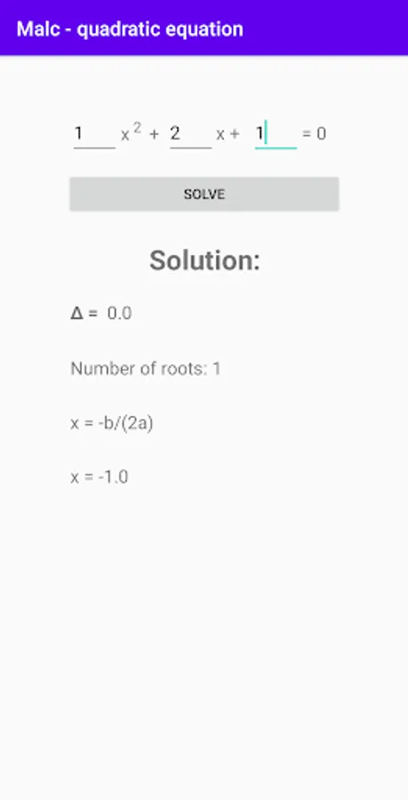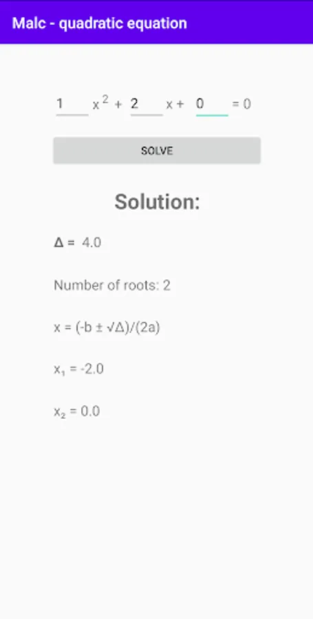 A simple, free application for solving square equations. Thanks to a simple interface, you can easily and quickly obtain a result. Especially helpful for students in math lessons to verify their solution.