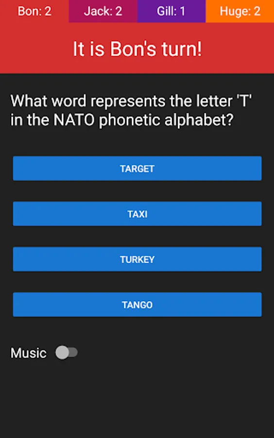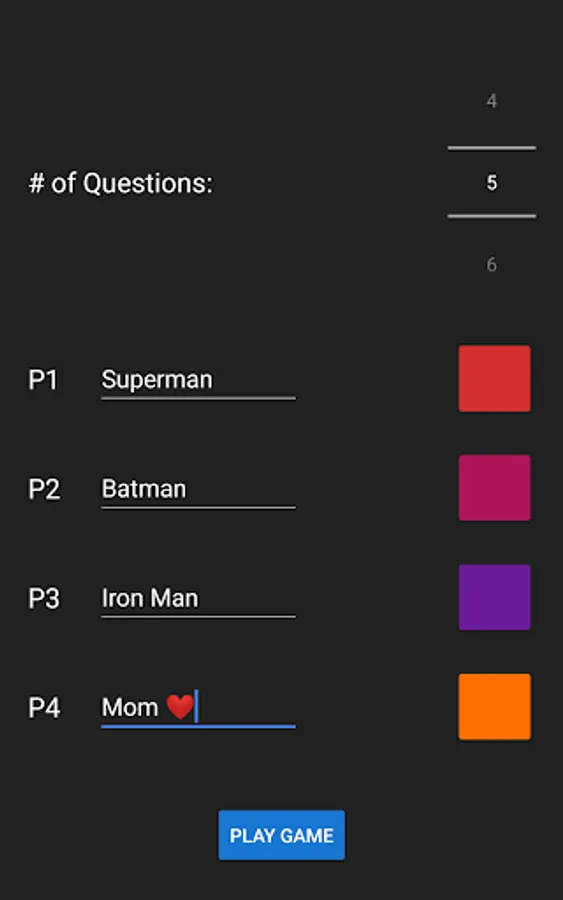 Chose from 18 categories and three difficulties. Change both your player name and color!