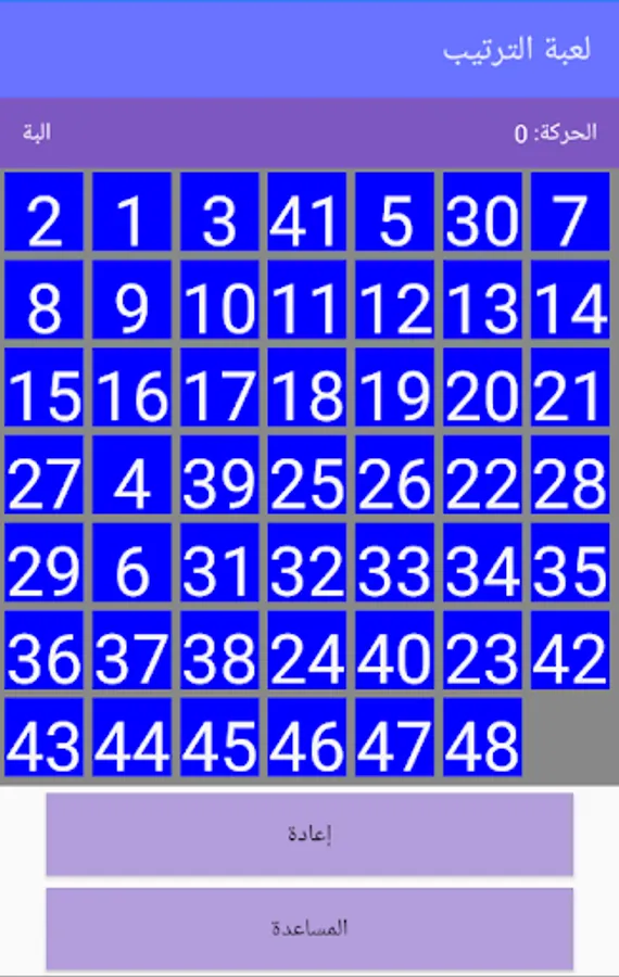 Game to arrange numbers. It has several stages from simple and is only 4 digits to 49 digits