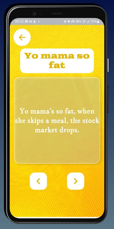 The Yo Mama Jokes app is the perfect way to have a few laughs with friends and family. This app is designed to provide users with a collection of the best yo mama jokes out there. With this app, you can easily access a wide range of hilarious yo mama jokes right at your fingertips.