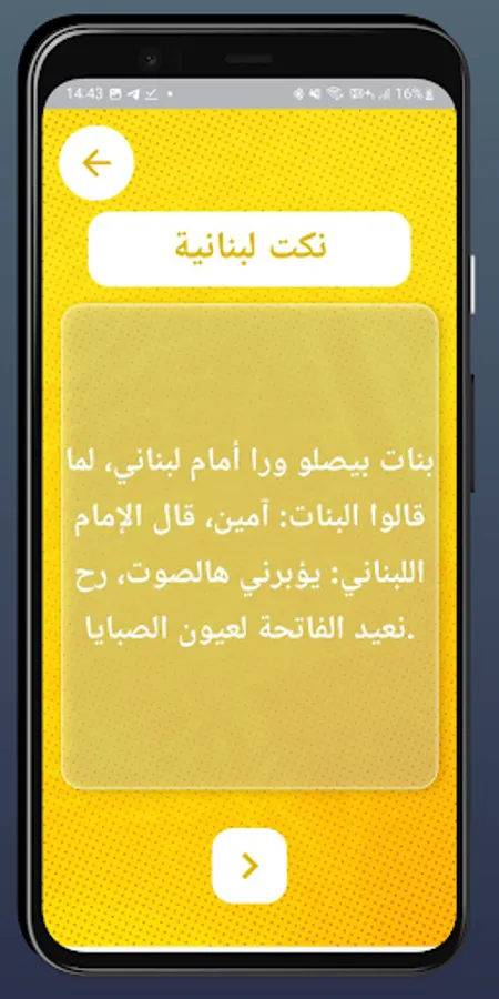 Are you looking for an application that enables you to enjoy laughter and entertainment at any time? Then, "Tahesh Jokes" app is what you need! This application contains hundreds of funny and funny jokes that will make you laugh out loud. You can search for jokes by a specific category or display jokes randomly. In addition, you can share the jokes with your friends via social media or email so that you all can have a good laugh. If you want to enjoy some laughter and entertainment, “Tahishah Jokes” is the perfect choice for you!