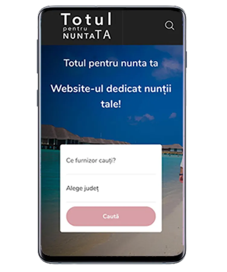 The portal www.totulpentrununtata.ro was born in 2020 to become the meeting point for future brides and grooms with the suppliers they need and to contribute to the relaunch of activities in the field of event organization.