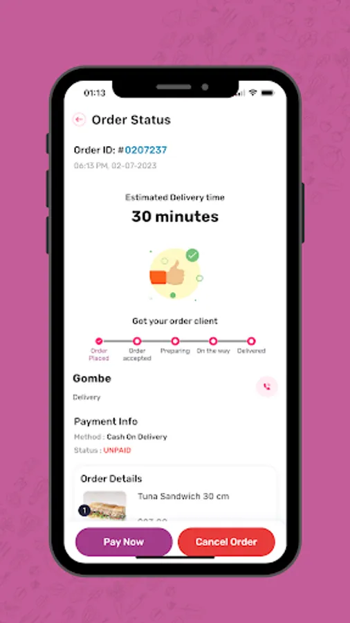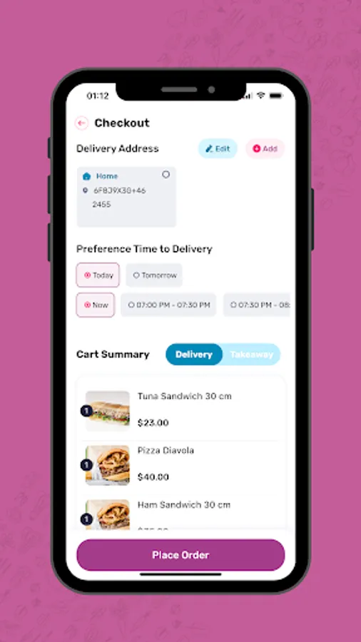 Simply browse through a variety of menus, find the dish that tantalizes your taste buds, and effortlessly add it to your cart with just a few taps. Once you've placed your order, track its progress in real-time. Watch as your meal makes its way to you, and see the estimated arrival time right at your address.