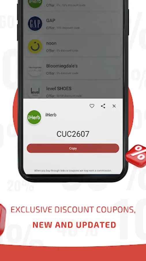 - Sharing: You can share the code or offer with your friends and family via social media or different apps.