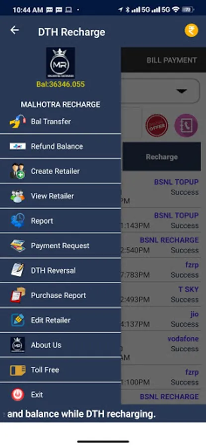 2. Live updates of last 5 transactions on Recharge Screen (Transfer screen if Distributor)