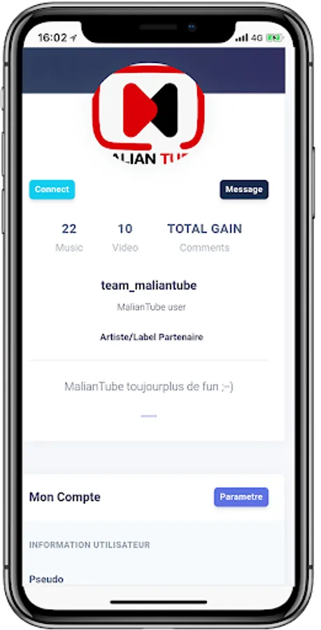 The MalianTube partners application allows artist partners to follow the evolution of their works on the MalianTube platform publish new music see the statistics of his music claim payments