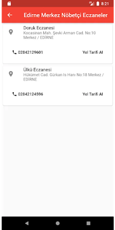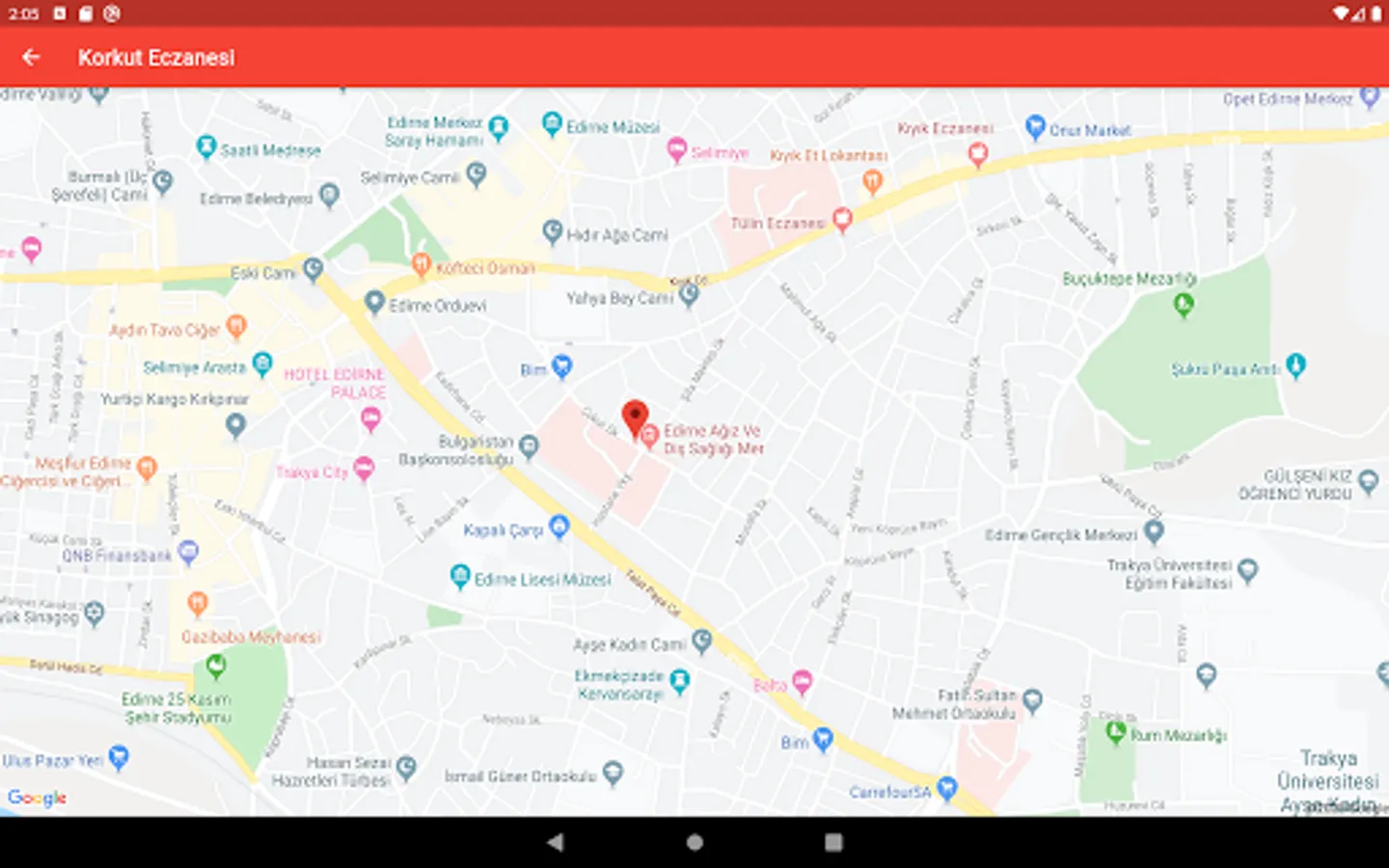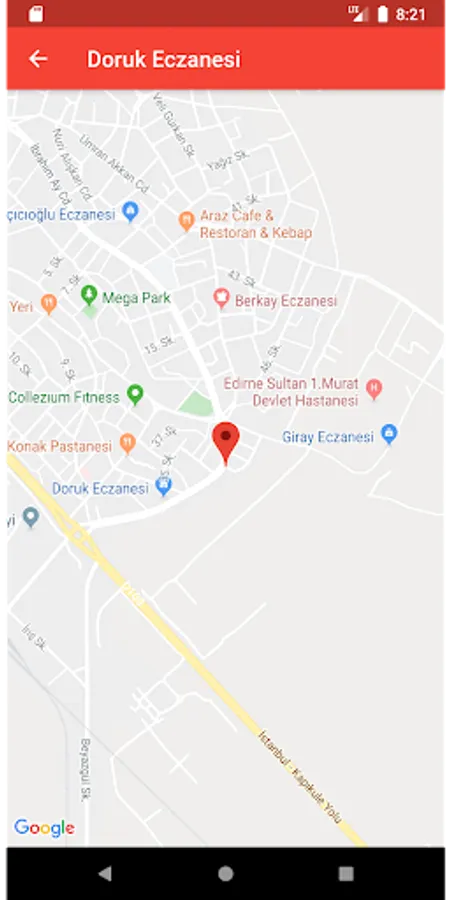 It shows the information of pharmacies on duty in Edirne, takes them to the location and allows us to search.