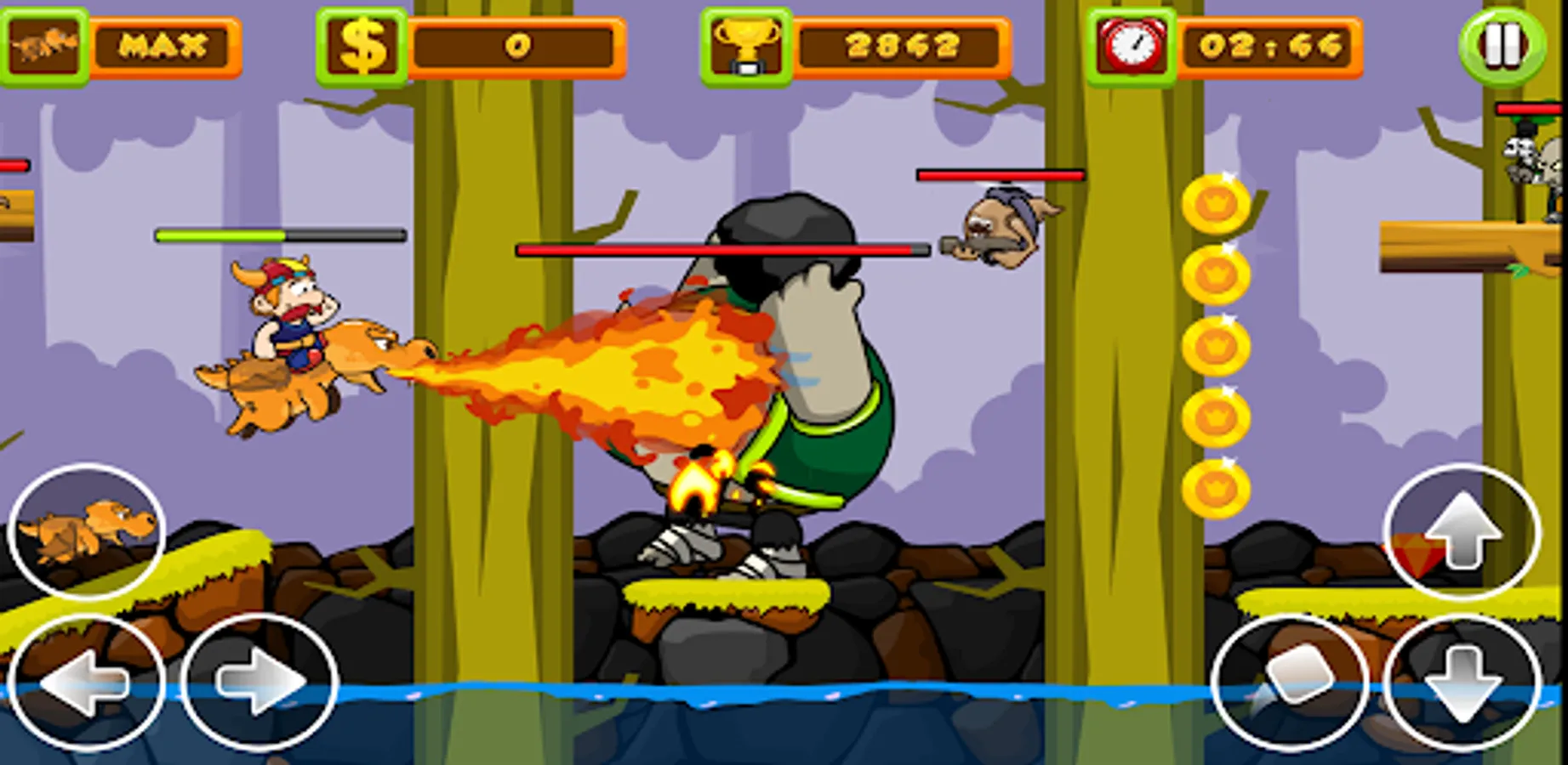 Viking Adventure is a simple and interesting game, where there are many weapons that the vikings and dragons can use in clearing the forest path to their destination while collecting coins and diamonds.