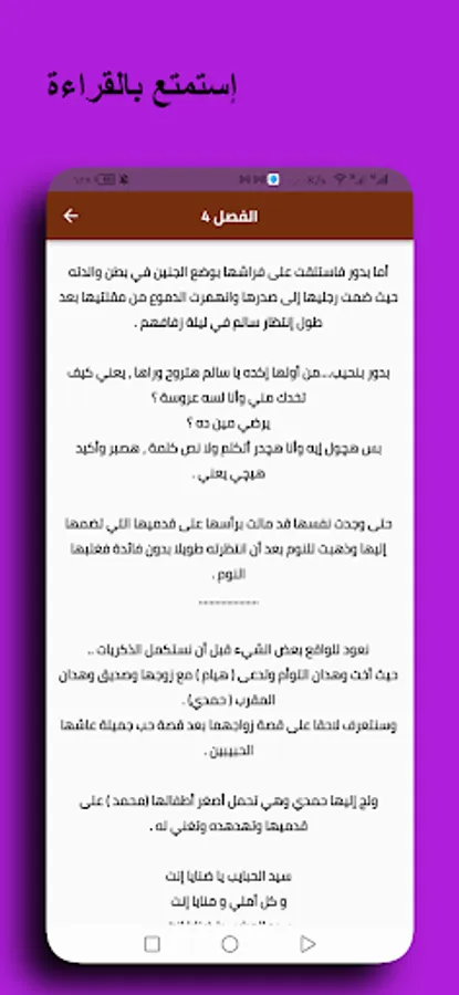 This application is characterized by being easy to browse and read. You can also share the application with friends. Easy and comfortable reading and writing. Easy navigation between the chapters of the narrator.