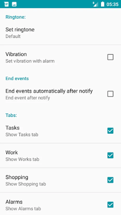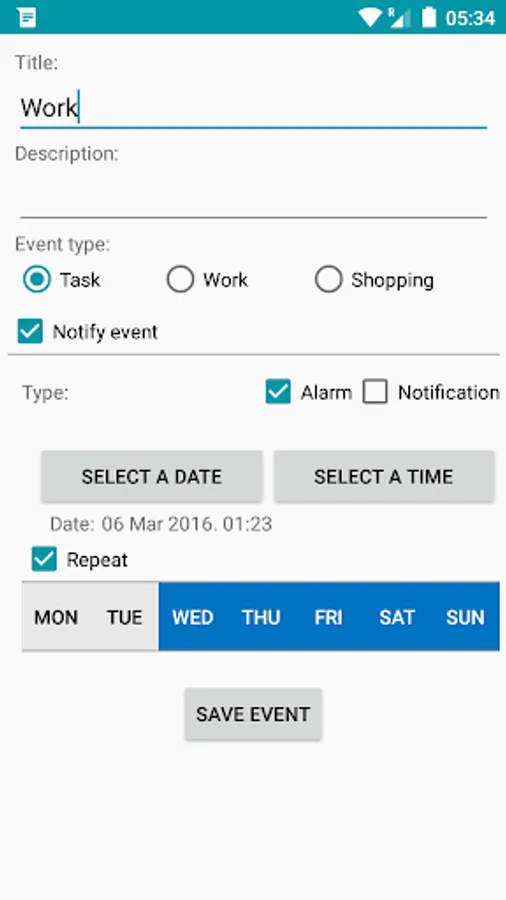 Also you can set an alarm tone and vibration. It is also possible to set repeating tasks with alarm.