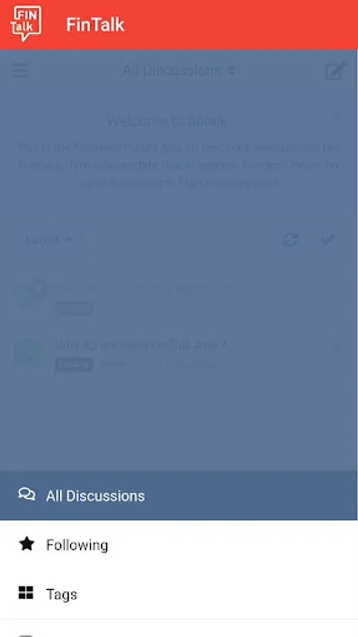 FinTalk is a Financial Educational social media forum which helps in sharing our thoughts and ideas, we get regular current events and updates on financial markets. you can discuss and post your trading terminal issues, FinTalk gives ultimate freedom to express your views on stock markets.