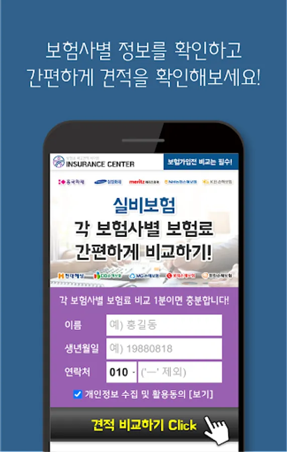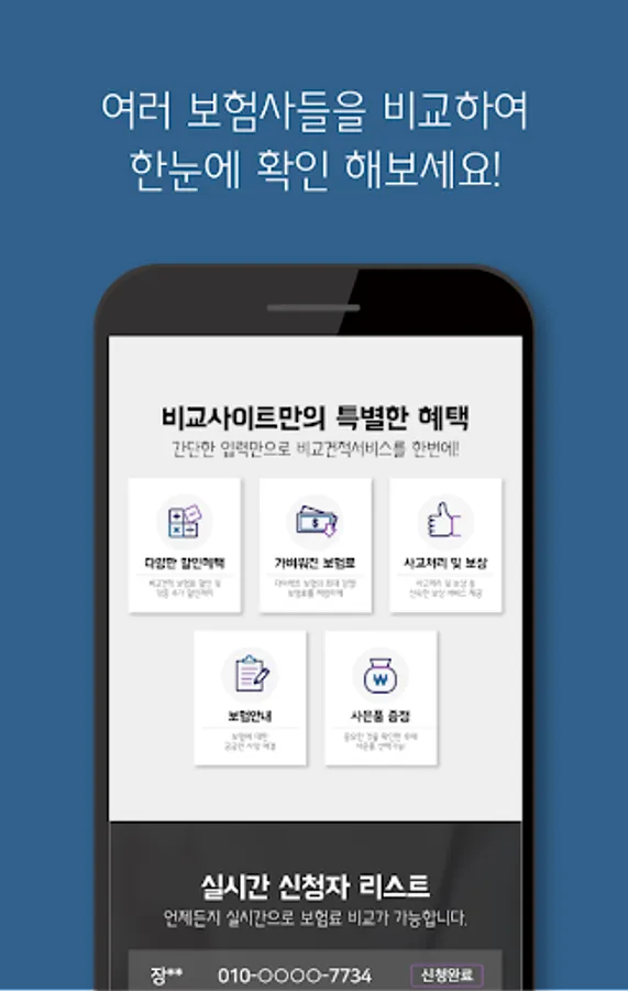 We provide a service that allows you to easily check and compare the prices of various private insurance insurance products by major domestic insurance companies. With just one smartphone application, you can easily compare insurance premiums.