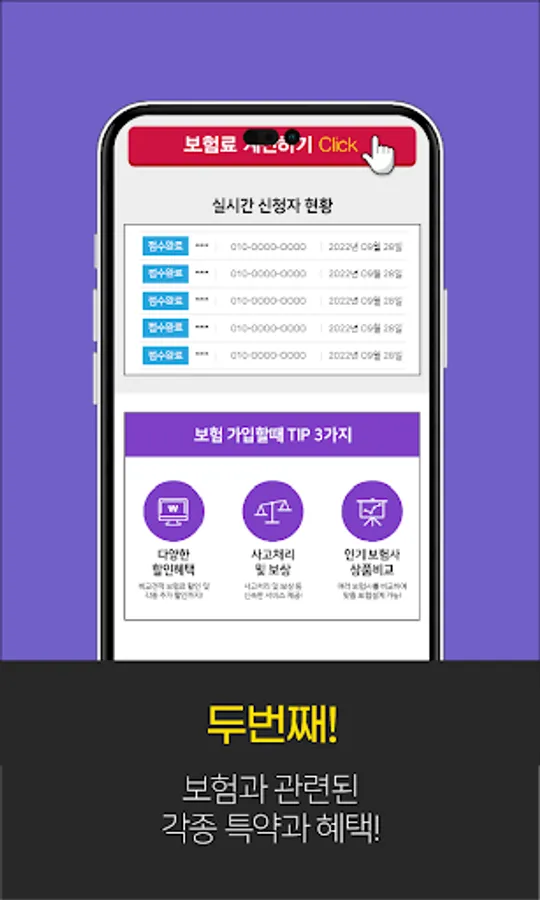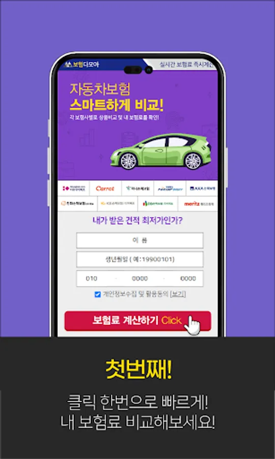 The Auto Insurance Direct Auto Insurance Premium Comparison Estimation app provides a variety of payment benefits to help you calculate and inquire your auto insurance premium meticulously. Insurance is cheaper! The guarantee is stronger! You can carefully check the non-optional, mandatory car insurance in the car insurance direct car insurance premium comparison estimate app. Meet the auto insurance direct auto insurance premium comparison quote app that always does its best!